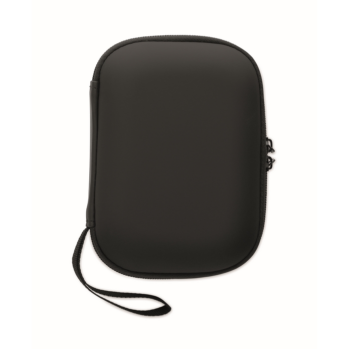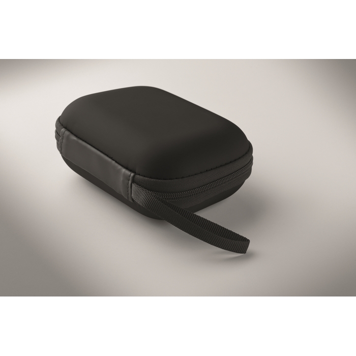 Lékárnička v pevném PU pouzdře. Obsahuje 2 rukavice, přikrývku, náplast, 2 obvazy, nůžky, 4 tampony, 10 náplastí a 6 čisticích ubrousků. Není určeno k prodeji mimo EU. Rozměry: 16 x 11.5 x 6.7 cm
