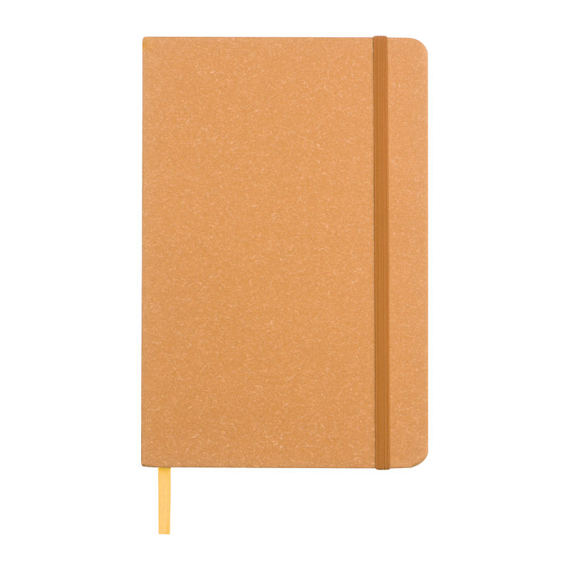 Poznámkový blok A5 s obalem z recyklovaného kartonu, záložkou, 160 tečkovanými stranami a zapínáním na gumičku. Rozměry: 21,1 × 14 × 1,2 cm. Zboží je dodáváno BEZ POUTKA na pero.