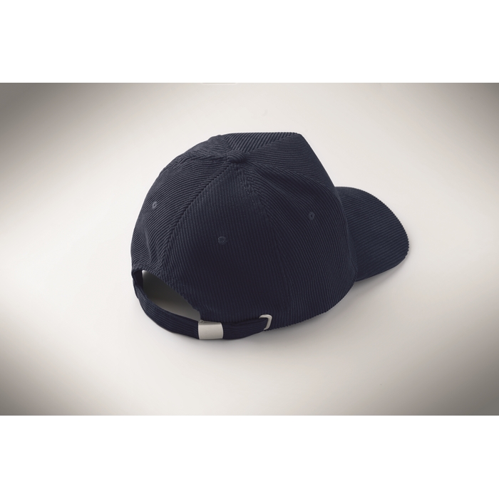 Pětipanelová kšiltovka z polyesterového manšestru s nastavitelným zapínáním na kovovou přezku. 220 g/m2. Rozměry: 58 cm
