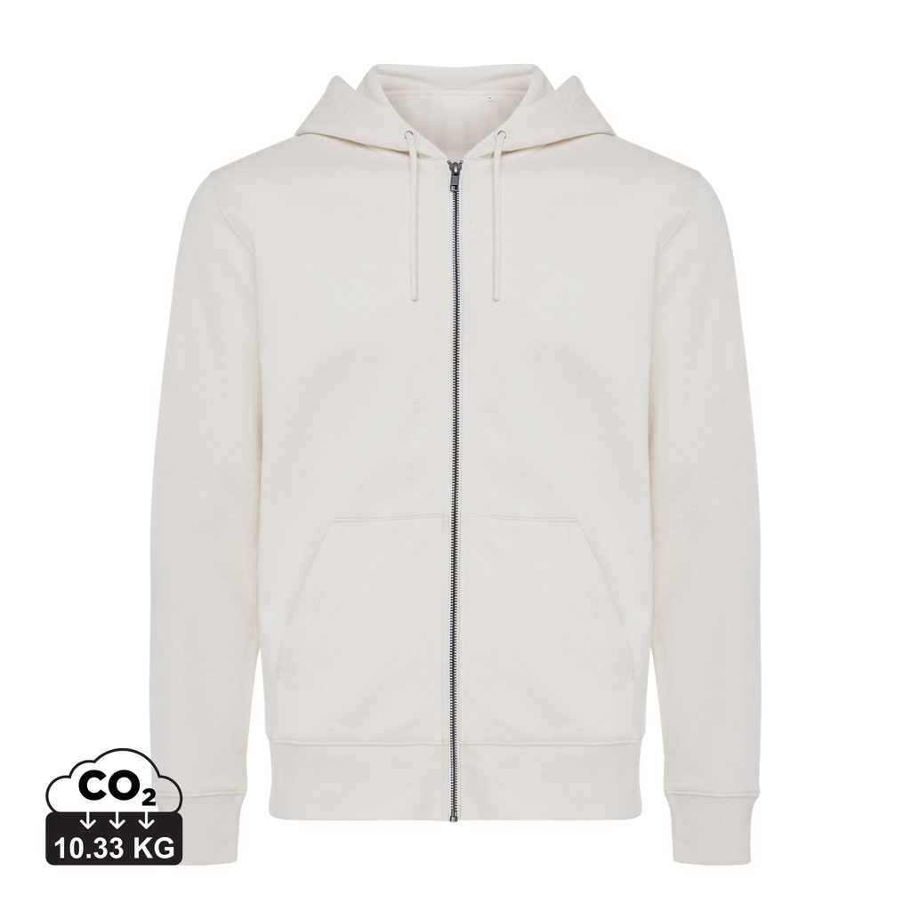 Unisex mikina Iqoniq se zapínáním na zip v provedení regular fit. Dvouvrstvá kapuce, dlouhé rukávy, 1x1 žebrování u límce, spodního lemu a manžet. Příjemný měkký česaný fleece na vnitřní straně. Složení: 100 % bavlna (50 % recyklovaná, 50 % organická), 340 g/m2. Obsah recyklovaných a organických materiálů je garantován díky využití speciální technologie AWARE™, která kombinuje možnost skenování materiálu a technologii blockchain. Každý produkt Iqoniq vlastní unikátní štítek s QR kódem, který odkazuje na příslušný digitální pas produktu. 2 % z výtěžku každého prodaného kusu je darováno na Water.org. Certifikováno OEKO-TEX® STANDARD 100 2303045 Centexbel. Povaha recyklovaného materiálu může mít vliv na barevnost nebo výskyt nečistot v textilu. Rozměry: 80 x 68.5 x 1 cm.