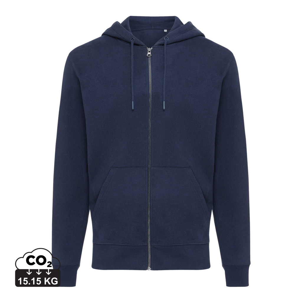 Mikina na zip s kapucí, recyklovaná bavlna, námořní modrá, S