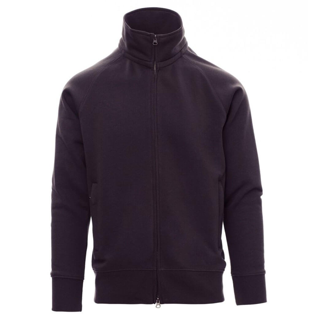 Pánská mikina s dlouhým raglánovým rukávem, celopropínací s oboustranným kovovým zipem, stojáček, dvě kapsy na zip, žebrované manžety a spodní lem, 70% česaná bavlna – 30% polyester, 300 gsm. Doporučená technologie tisku: sítotisk S3, výšivka.