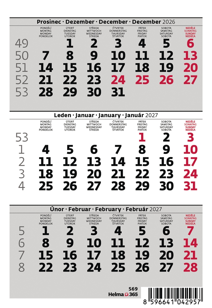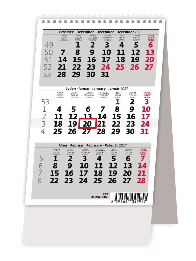 Mini tříměsíční kalendář 2027, stolní kalendář