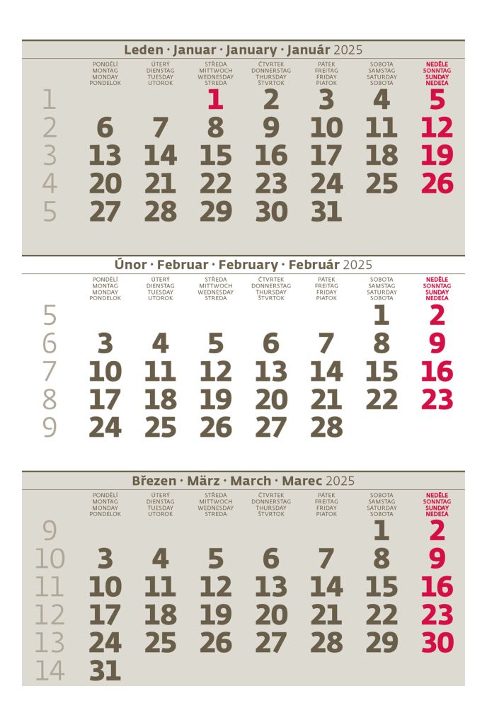 Stolní tříměsíční mini kalendář.