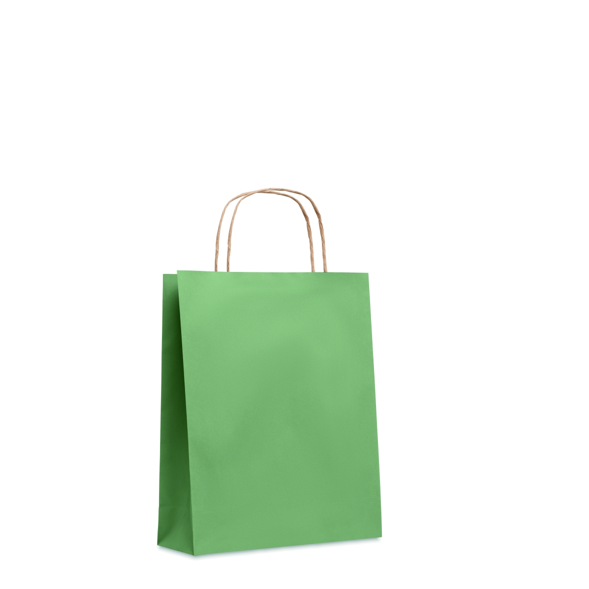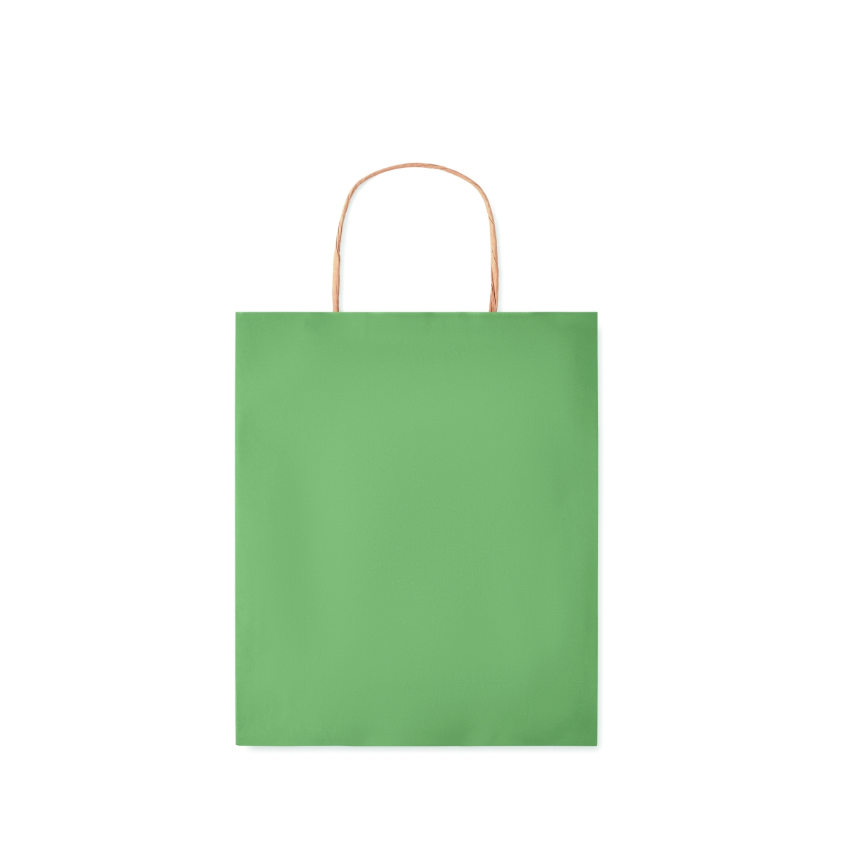 Papírová dárková taška s kroucenými uchy. Papír 90 g/m2. Vyrobeno v Evropě. Rozměry: 18 × 21 × 8 cm.