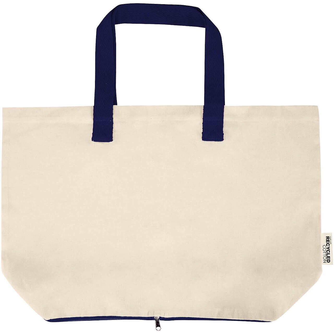 Nákupní taška z recyklované bavlny, béžová/námořní modrá