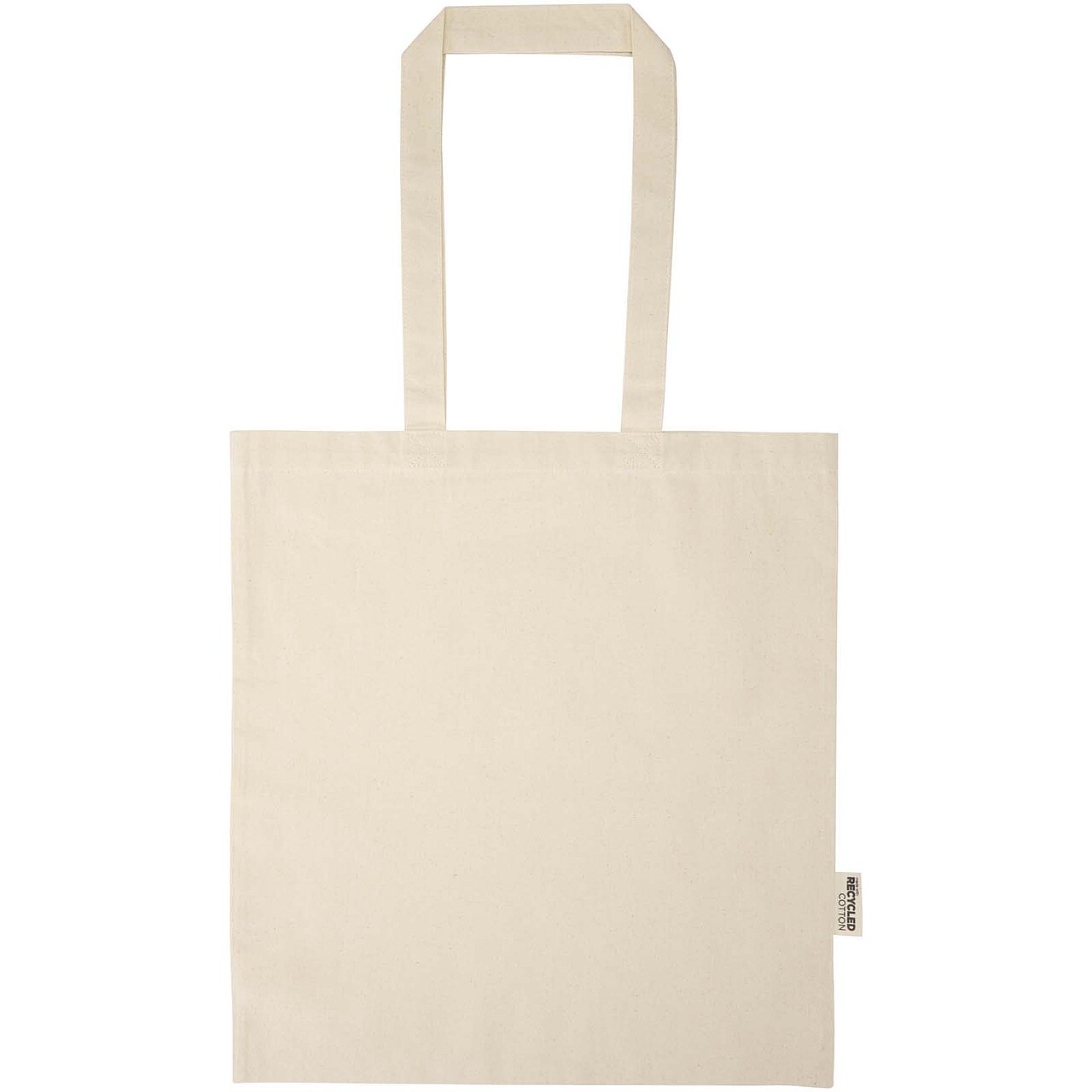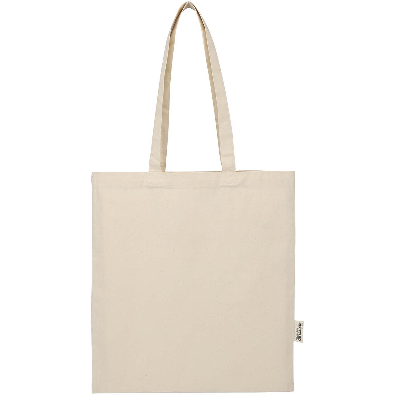 Taška, vyrobená z 60 % z recyklované bavlny s certifikací GRS a ze 40 % z RPET s certifikací GRS, má hustotu tkaniny 180 g/m2, je pevná a odolná, ideální pro každodenní použití. Má velkou hlavní přihrádku, která umožní maximální viditelnost kteréhokoli loga, a díky odolnému materiálu je vhodná i pro nošení těžších věcí (až 5 kilogramů). Ramenní popruhy o délce 30 cm zajišťují pohodlné nošení. Rozměry: 38 x 42 cm