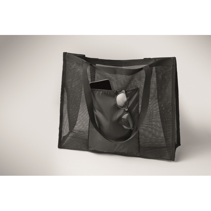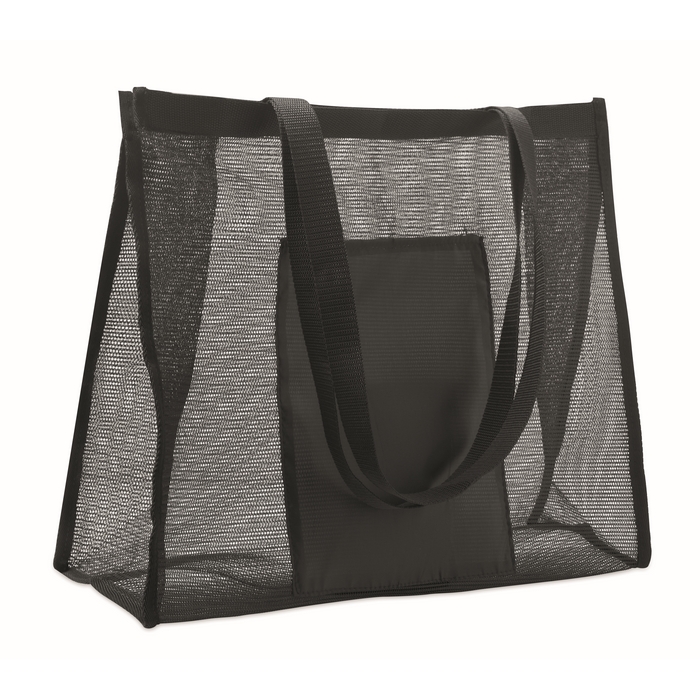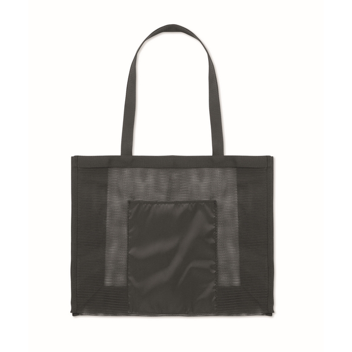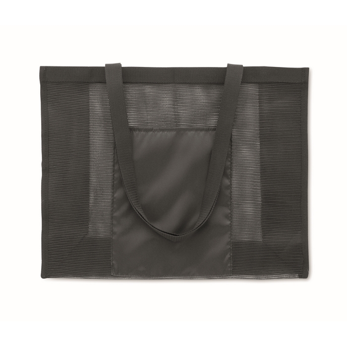 Nákupní taška vyrobená z RPET síťoviny s krátkými uchy z 210D RPET. Velká otevřená přední kapsa. Objem 20 l, nosnost až 10 kg. Rozměry: 44.5 x 14 x 34 cm