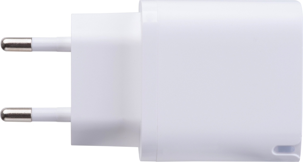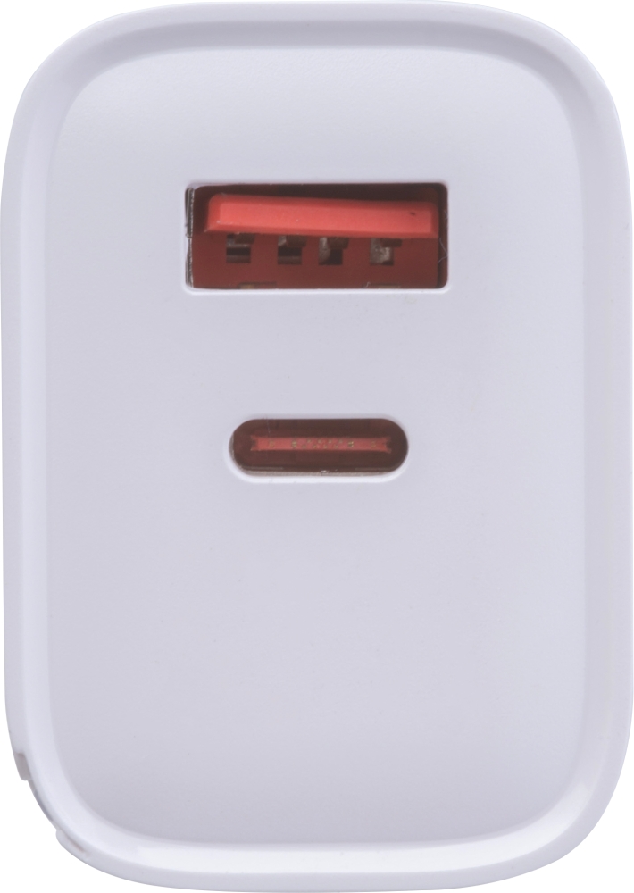 Nabíječka Plug-in 30W, vybavená porty USB-A a USB-C a funkcí rychlého nabíjení. Ideální pro rychlé nabití chytrých telefonů, tabletů a jiných zařízení. Rozměry: 7,9 x 4,2 x 3 cm