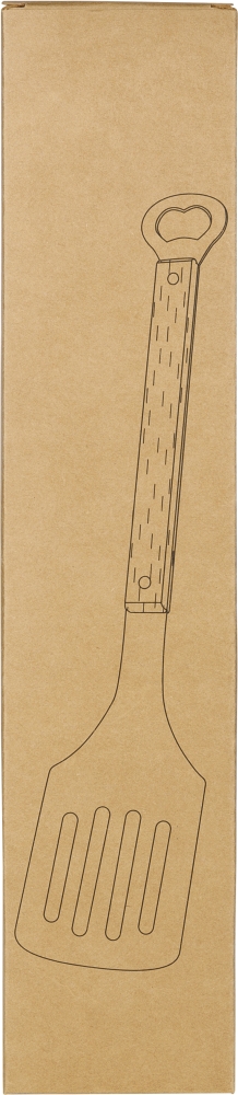 Nerezová grilovací špachtle s bukovou rukojetí a integrovaným otvírákem na lahve na konci. Jednotlivě baleno v hnědé kartonové krabici. Rozměry: 16 cm x 365 cm