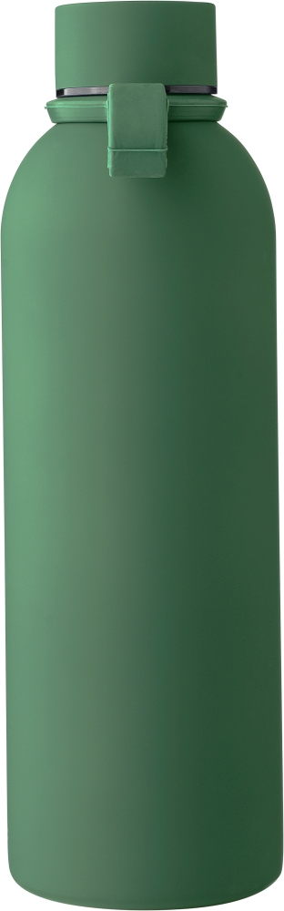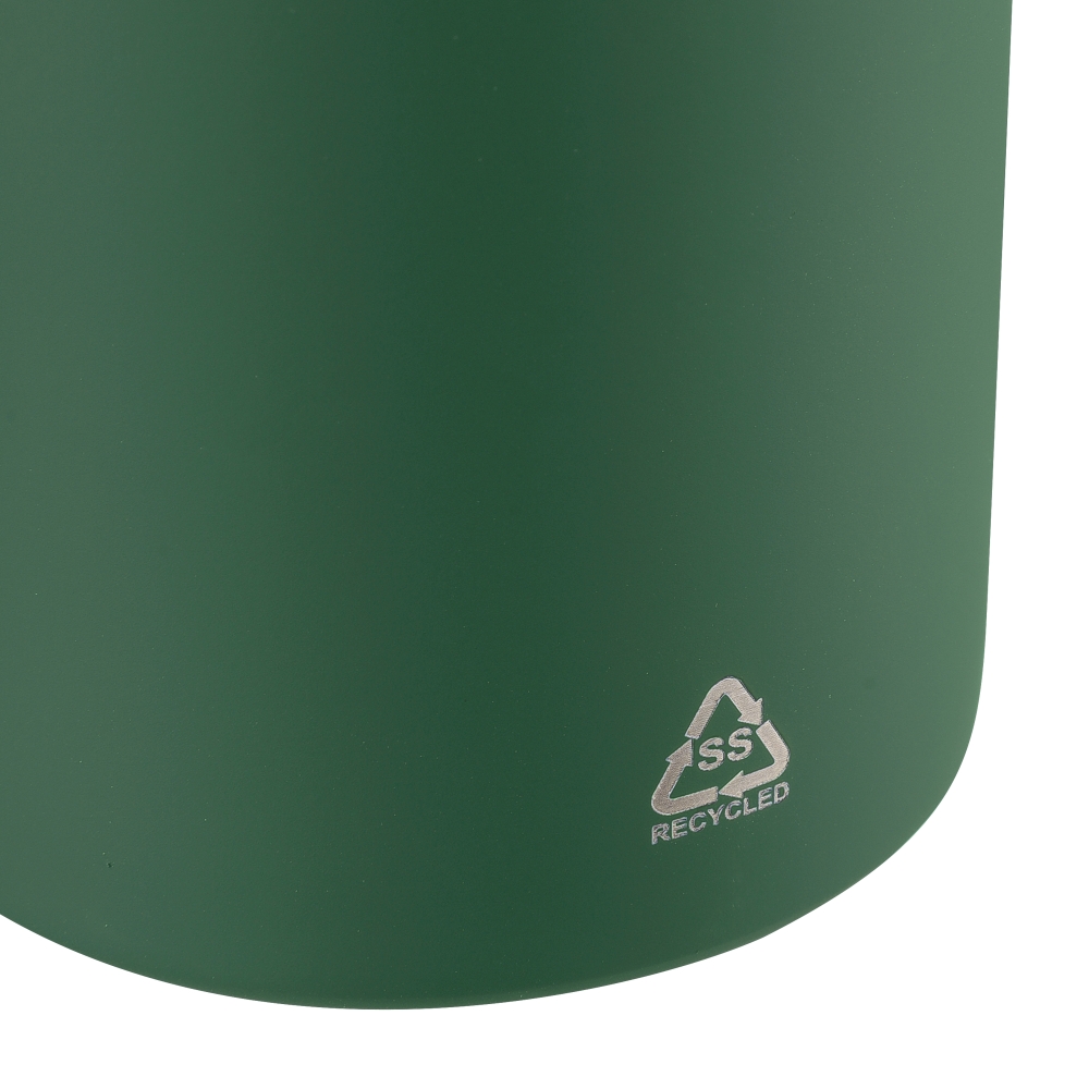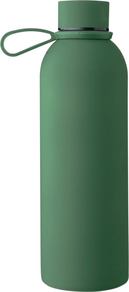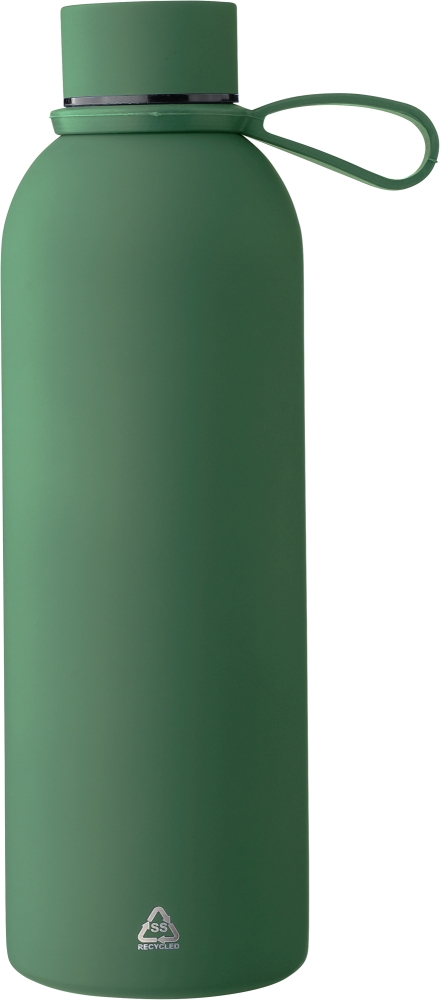 Vakuová láhev na pití z recyklované nerezové oceli s dvojitou stěnou (500 ml) s vnitřní a vnější stranou z nerezové oceli. S pogumovaným povrchem pro měkký pocit. Šroubovací víčko z PP s kovovými detaily a silikonovým poutkem na nošení. Na těle je vyryté recyklované logo. Jednotlivě baleno v hnědé kartonové krabici. Rozměry: 7,3 x 23 cm.