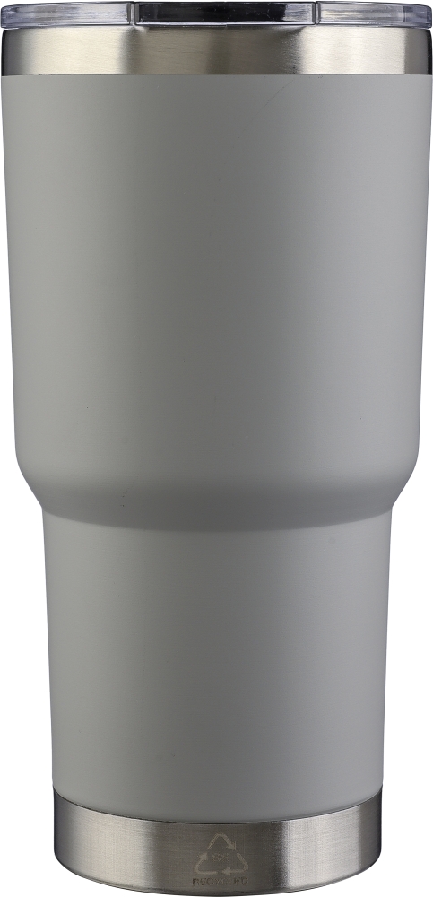 Nerezový dvouplášťový hrnek (590 ml) s PS víčkem. Recyklované logo vyryté na hrnku. Interiér je vyroben z nerezové oceli 304 a exteriér je z nerezové oceli 201. Jednotlivě baleno v hnědé kartonové krabici.Rozměry: 9 x 18 cm