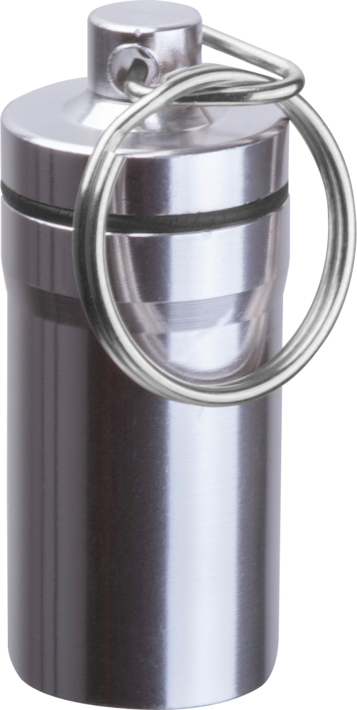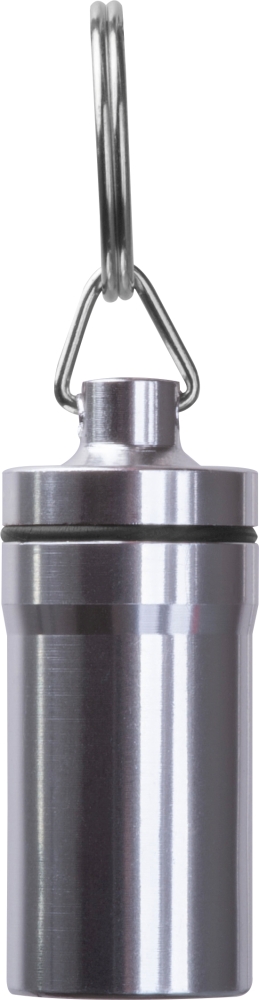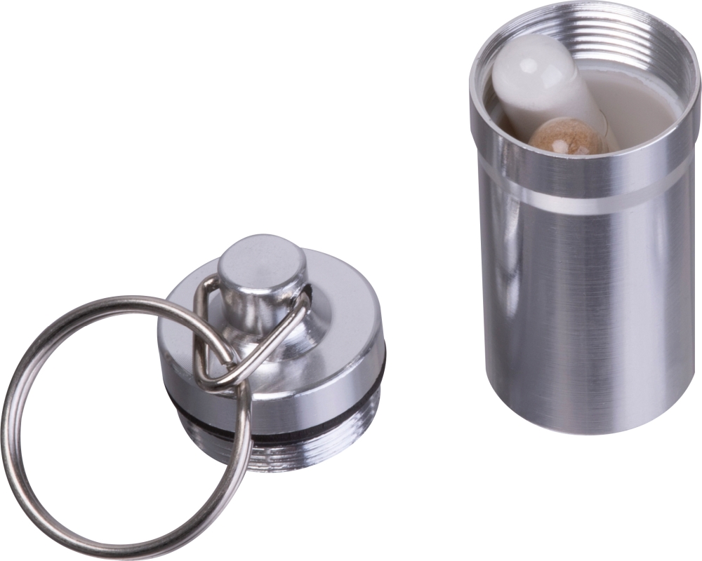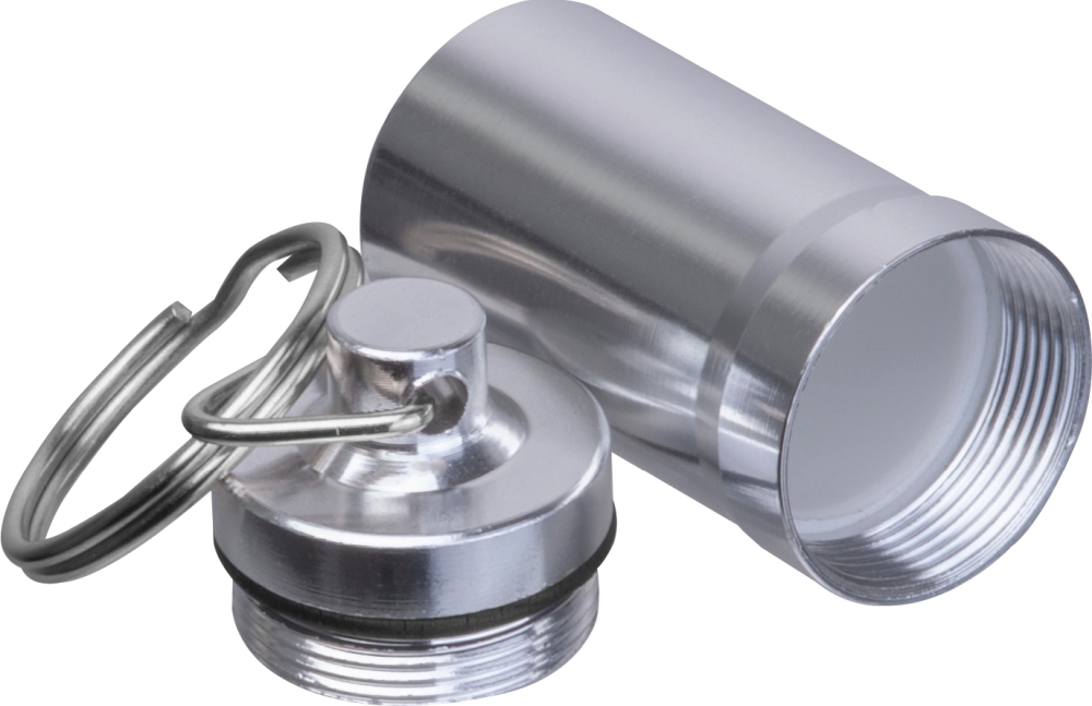 Přívěšek na klíče s vnějším povrchem z nerezové oceli a vnitřním plastem. Ideální na bezpečné uložení malých předmětů na cesty. Rozměry: o 2 x 5,2 cm