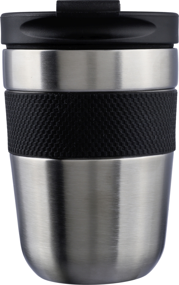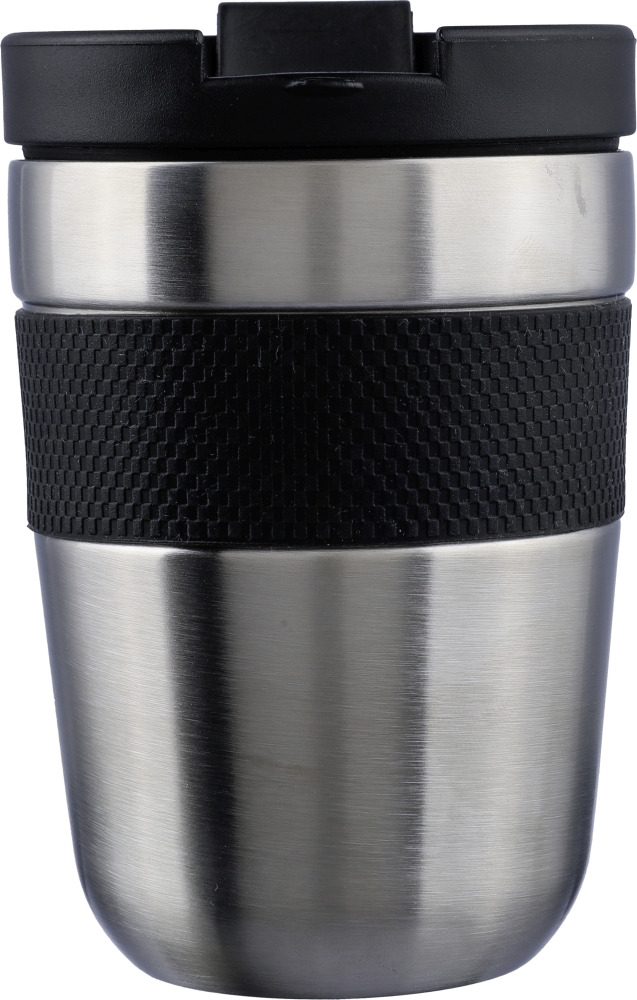 Nerezový dvoustěnný hrnek na pití (300 ml) s PP víčkem a silikonovým úchytem. Udrží obsah horký po dobu 4 hodin a studený po dobu 6 hodin. Interiér je vyroben z nerezové oceli 304 a exteriér je z nerezové oceli 201. Jednotlivě baleno v hnědé kartonové krabici.Rozměry: 8,5 x 8,5 x 13 cm