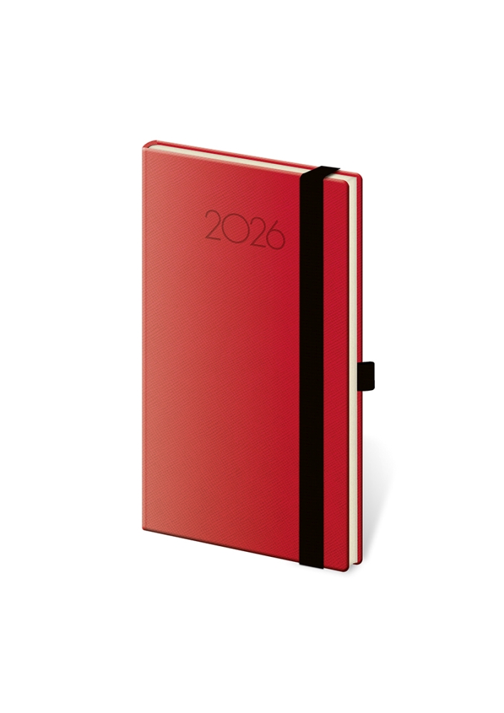 New Praga 2027 diář kapesní, červený s černou gumičkou