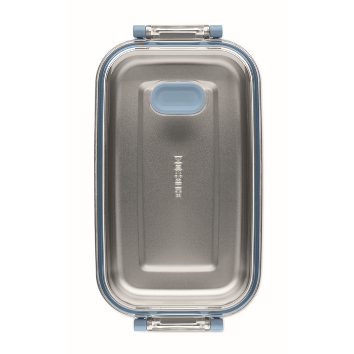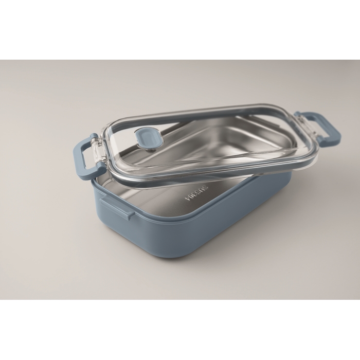 Obědový box z PP s přídavným zásobníkem z recykl. nerez. oceli. Vzduchotěsné AS víčko, které udrží potraviny čerstvé a bezpečné zavřené. Objem 750ml bez zásobníku a 650ml se zásobníkem. Rozměry: 21.6 x 12 x 6.5 cm