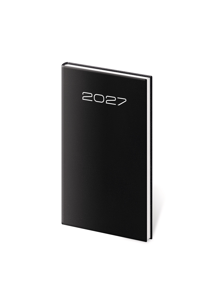 Povrch diáře je zhotoven z univerzálního materiálu na bázi zušlechtěného papíru, který díky své jemné struktuře získává vzhled koženky. Doporučujeme ražbu přes fólii, případně potisk povrchu sítotiskem. Diář obsahuje: osobní údaje, plánovač dovolené (měsíční přehled), plánovací kalendář, mezinárodní svátky, roční výhled, týdenní layout, adresář. Rozměry: 8 x 15 cm.