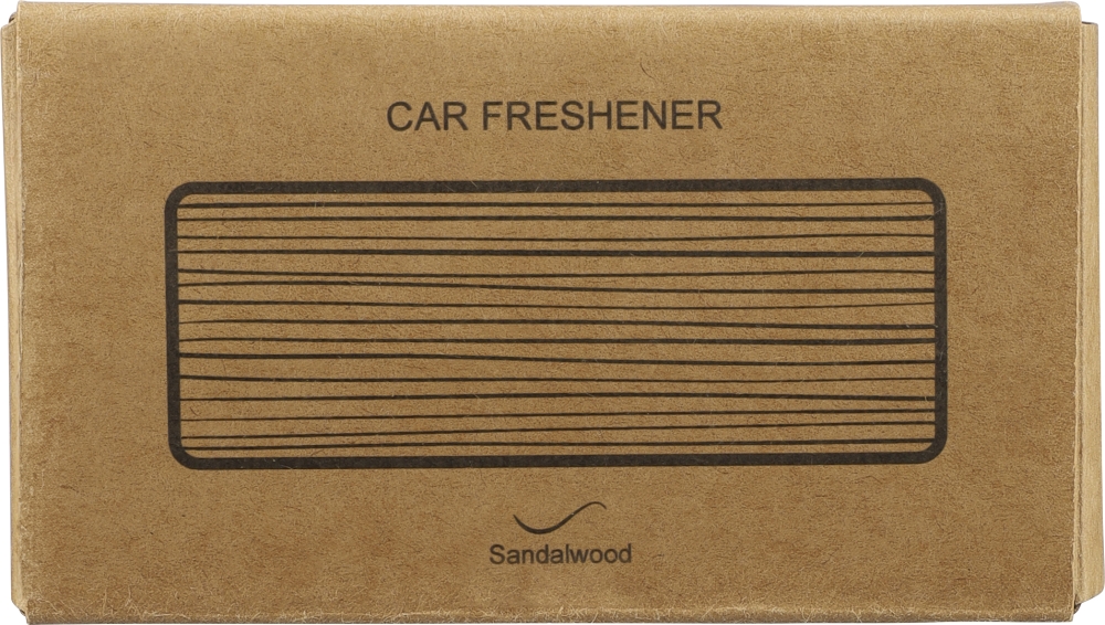 Přírodní osvěžovač vzduchu do auta z bukového dřeva s 2 × 3 g bezalkoholové vůně santalového dřeva (jedna předplněná, jedna náplň). Součástí balení je ABS klip do větracího otvoru auta. Baleno v hnědé kartonové krabici s ilustrací. Rozměry: 3,3 cm x 11,5 cm