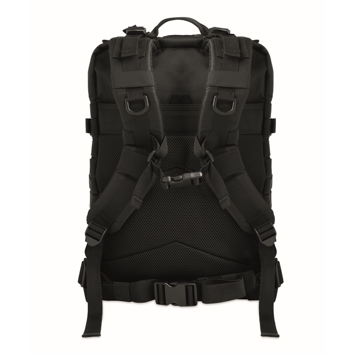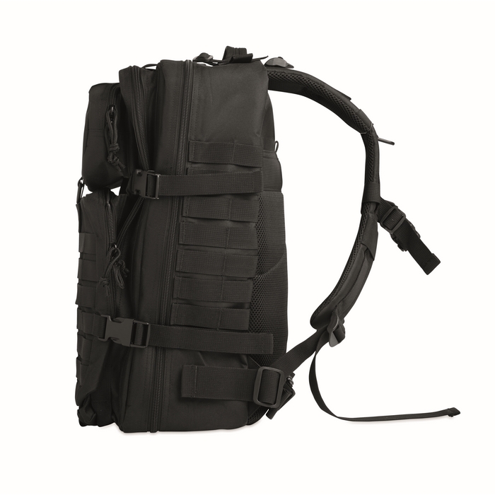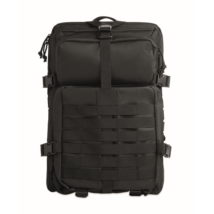 Outdoorový 50l batoh z 600D RPET s polstrovaným prostorem na notebook a několika vnitřními přihrádkami, předními kapsami na zip, síťovanými polstrovanými popruhy a zády a bederním pásem. Rozměry: 30 x 14 x 48 cm