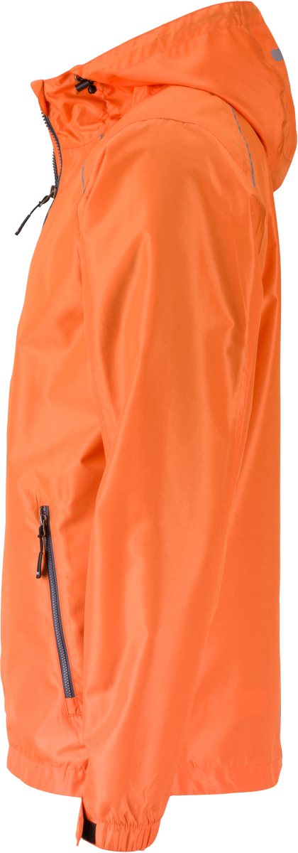 Větruodolná a voděodolná (3.000mm vodní sloupec) s TPU povlakem, prodyšná (1.500g/m2 za 24h), nastavitelná kapuce s elastickou šňůrkou, ochrana brady, 2 boční kapsy se zipem, vnitřní kapsa, podlepené švy, zipy v kontrastní barvě, přístup k zušlechtění na zádech, reflexní detaily (bez ochranné funkce) na kapuci, vpředu a vzadu . Materiál: Vnější strana: 100% polyester, uvnitř: 100% polyester