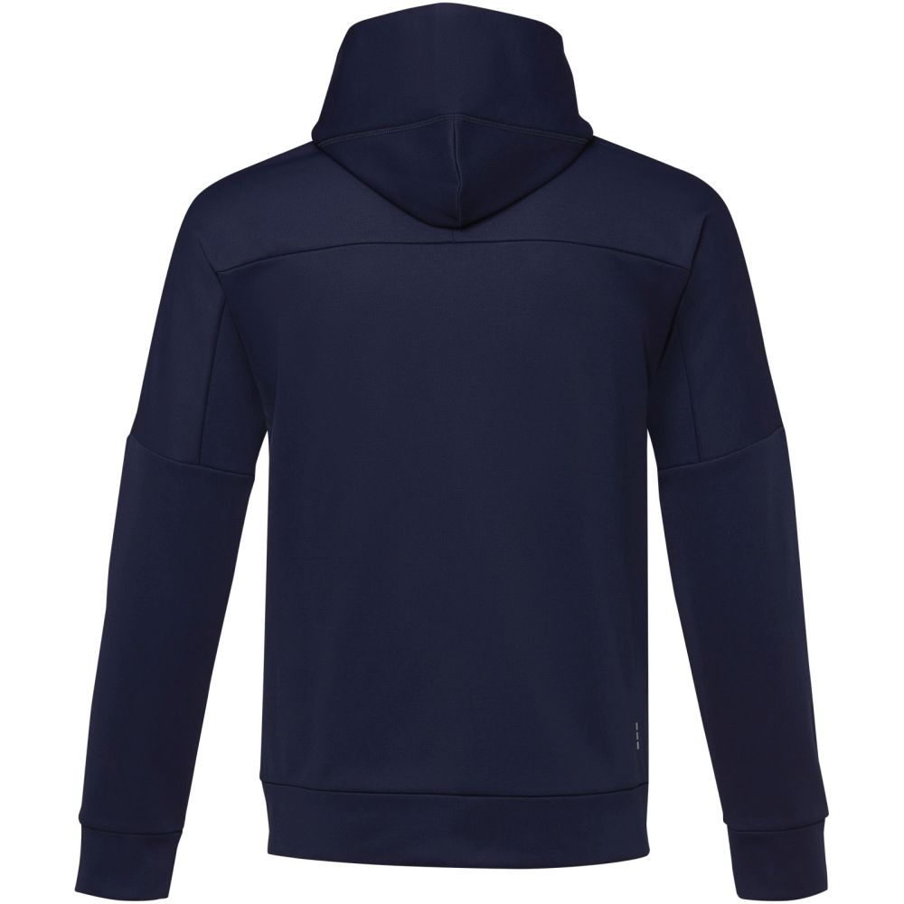 Pánská celopropínací pletená bunda s kapucí, značka Elevate. Přední kapsy. Kartáčované na vnitřní straně. Značkové závěsné poutko. Saténový nákrčník. Vnitřní port na sluchátka s průtahem na kabel. Potisk štítku technologií heat transfer pro větší pohodlí. Úplet 70% polyester, 30% Sorona®, 245 g/m2.