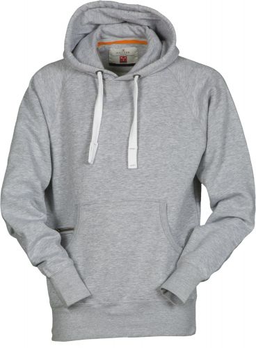 Pánská mikina s kapucí s dvojitým prošitím, bílá stahovací šňůrka se sladěným prošitím a s kovovými kroužky, raglánové rukávy, V-prošívání pod krkem, klokaní kapsa, kapsička na zip, manžety a pas s elastickým žebrováním, zesílené švy. Gramáž 300g/m2. Materilál 60% bavlna, 40% polyester.