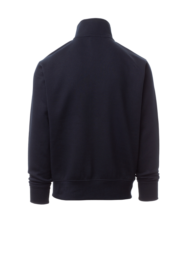 Pánská mikina s barevně sladěným plastovým skrytým celozipem s jedním přizpůsobeným jezdcem, všívané rukávy, dvě prostřižené kapsy se zipem, manžety a pas s elastickým žebrováním, zesílené švy, vyztužená páska sladěné barvy na vnitřní straně krku. Materiál: 55% BAVLNA + 45% POLYESTER