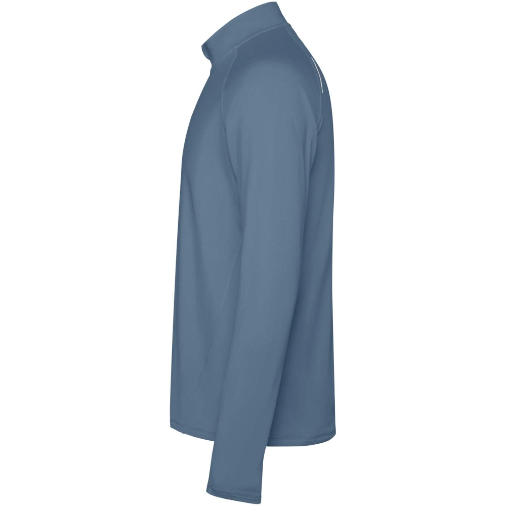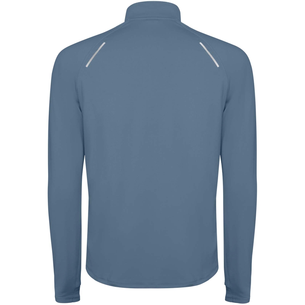 Pánská raglánová mikina s dlouhým rukávem. Límec s obráceným designem na poloviční zip s reflexními detaily. Zesílené kryty švů. Manžety s otvory na palce. Reflexní detaily na zadní straně. Zadní lem je o něco delší než přední. Teplá kartáčovaná vnitřní tkanina.