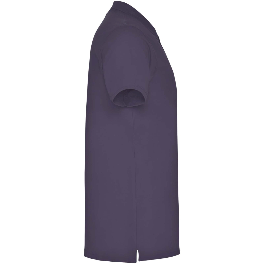 Pánské polo tričko s krátkým rukávem. Zesílené kryté švy ve vnitřním límci. Manžety a límec s žebrováním 1x1. Boční švy. Zapínání na 3 knoflíky a boční rozparky. Volitelná kapsa. Odnímatelný štítek.