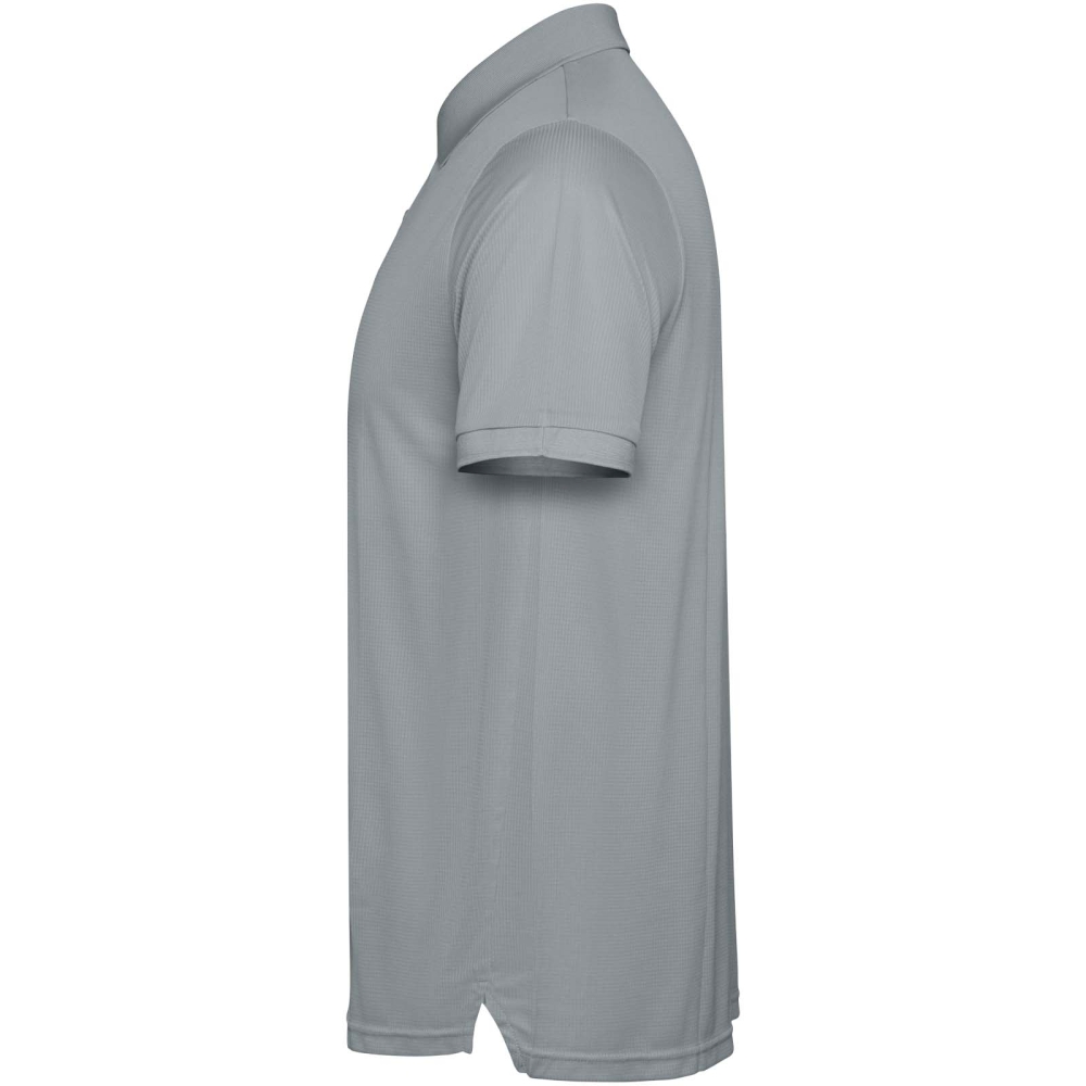 Pánské polo tričko s krátkým rukávem. Zesílené kryté švy ve vnitřním límci. 1×1 žebrované manžety a límeček. Boční švy. Zapínání na 3 knoflíky a boční rozparky.