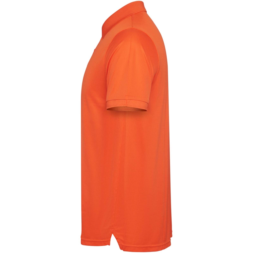 Pánské polo tričko s krátkým rukávem. Zesílené kryté švy ve vnitřním límci. 1×1 žebrované manžety a límeček. Boční švy. Zapínání na 3 knoflíky a boční rozparky.
