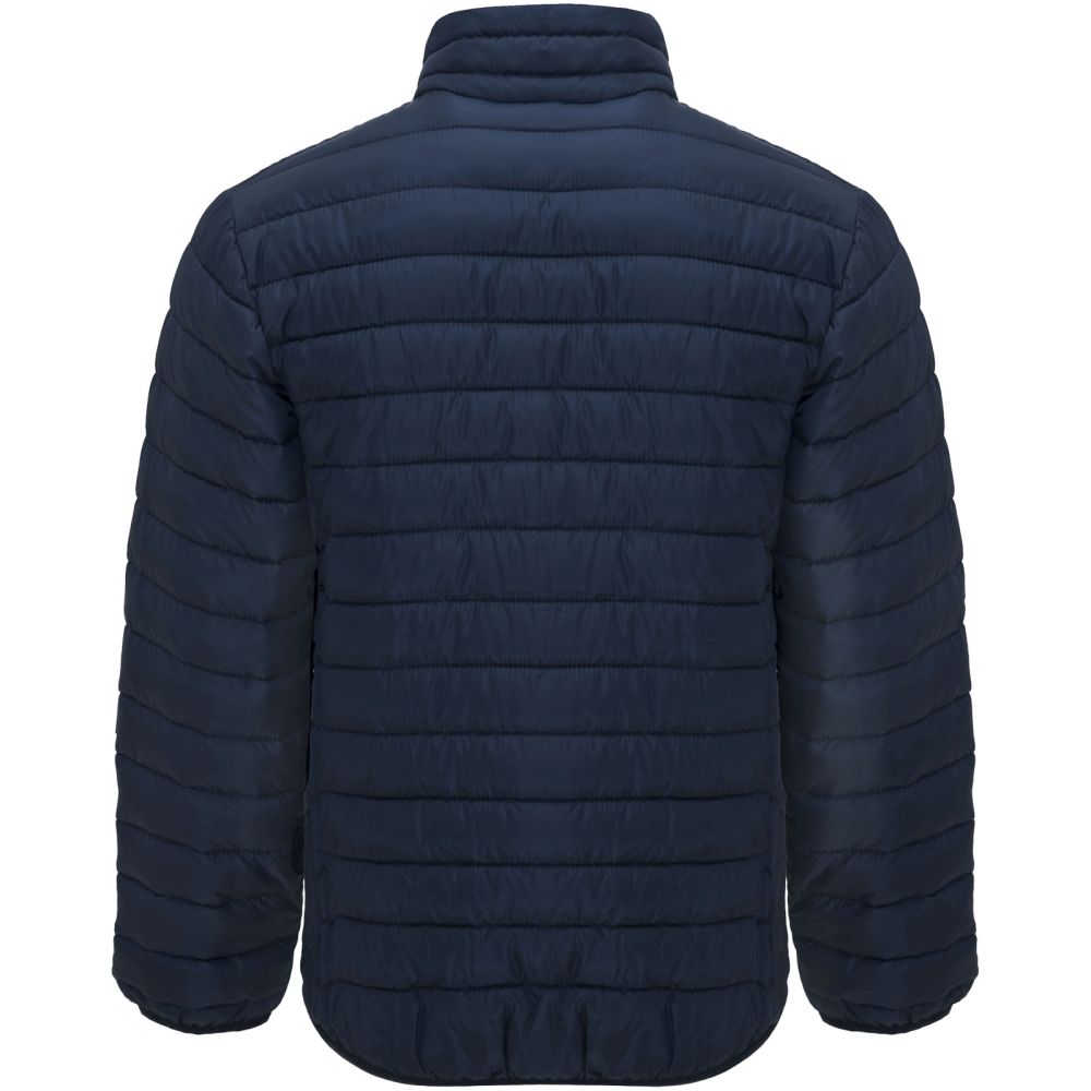 Pánská prošívaná bunda s výplní z peří na dotek. Obrácené zipy s odpovídajícím chráničem brady a stahováním. Dvě přední kapsy se zipy. Odpovídající elastické lemování límce, manžet a spodního lemu. Kontrastní vnitřní podšívka. Součástí je úložný vak na přenášení. Lehký a skladný oděv. Odnímatelná etiketa. Odolný vůči vodě. Odolný proti větru. Model měří 184 cm a má na sobě velikost L.