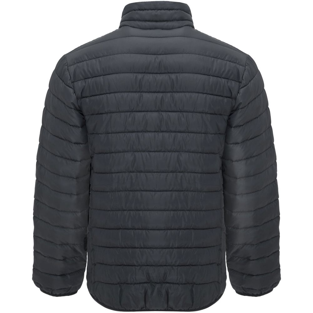 Pánská prošívaná bunda s výplní z peří na dotek. Obrácené zipy s odpovídajícím chráničem brady a stahováním. Dvě přední kapsy se zipy. Odpovídající elastické lemování límce, manžet a spodního lemu. Kontrastní vnitřní podšívka. Součástí je úložný vak na přenášení. Lehký a skladný oděv. Odnímatelná etiketa. Odolný vůči vodě. Odolný proti větru. Model měří 184 cm a má na sobě velikost L.