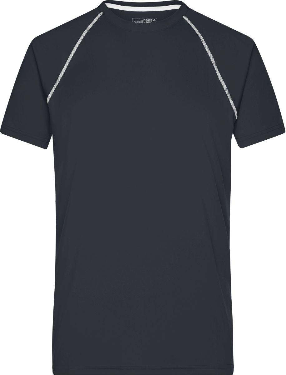 JAMES & NICHOLSON SPORTS T-SHIRT MEN. Pánské sportovní tričko s krátkými raglánovými rukávy a kulatým výstřihem uplým u krku. Kolem ramen jsou ploché kontrastní švy. Materiál reguluje vlhkost a je rychleschnoucí. Vyrobeno ze 100% polyesteru, 130g. Kartonové množství v ks: 50