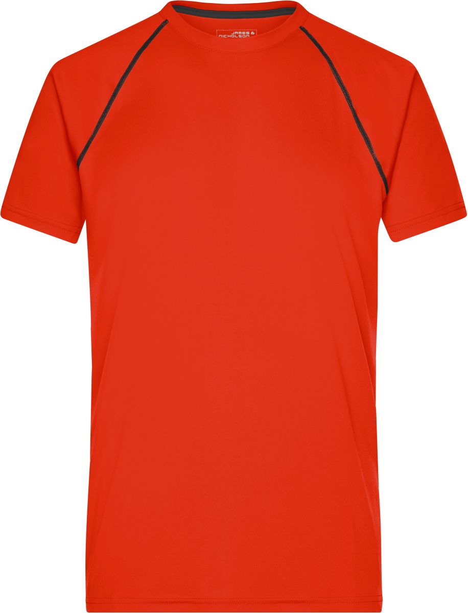 JAMES & NICHOLSON SPORTS T-SHIRT MEN. Pánské sportovní tričko s krátkými raglánovými rukávy a kulatým výstřihem uplým u krku. Kolem ramen jsou ploché kontrastní švy. Materiál reguluje vlhkost a je rychleschnoucí. Vyrobeno ze 100% polyesteru, 130g. Kartonové množství v ks: 50