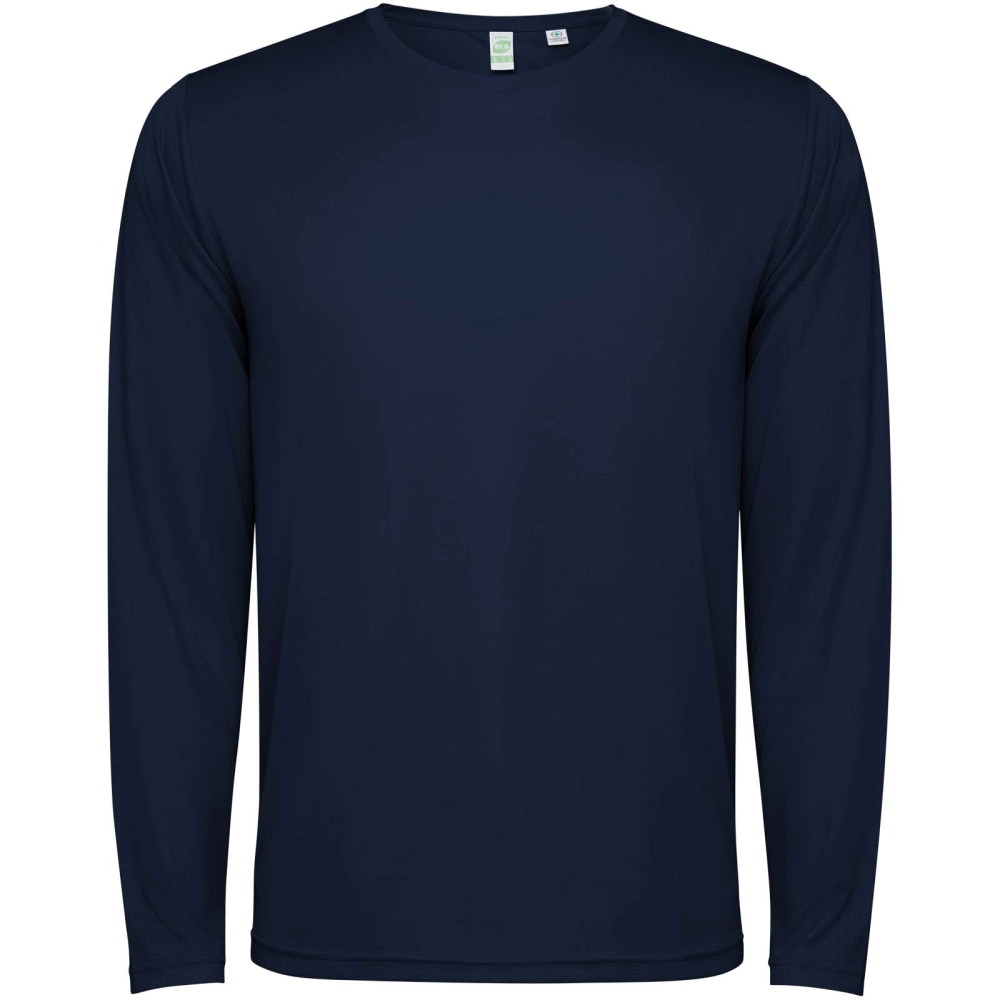 Unisex tričko s dlouhým rukávem. Límec s ladícími švy. Zadní lem je o něco delší než přední. Boční švy posunuté dopředu.