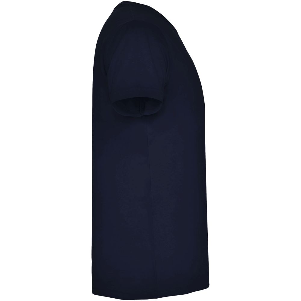 Tričko s krátkým rukávem, tubulárním střihem (bez postranních švů) a dvouvrstvým výstřihem do V. Zesílené kryté švy v límci a na ramenou. Odnímatelný štítek. Materiál: 100% bavlna