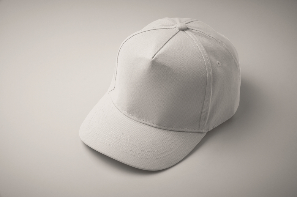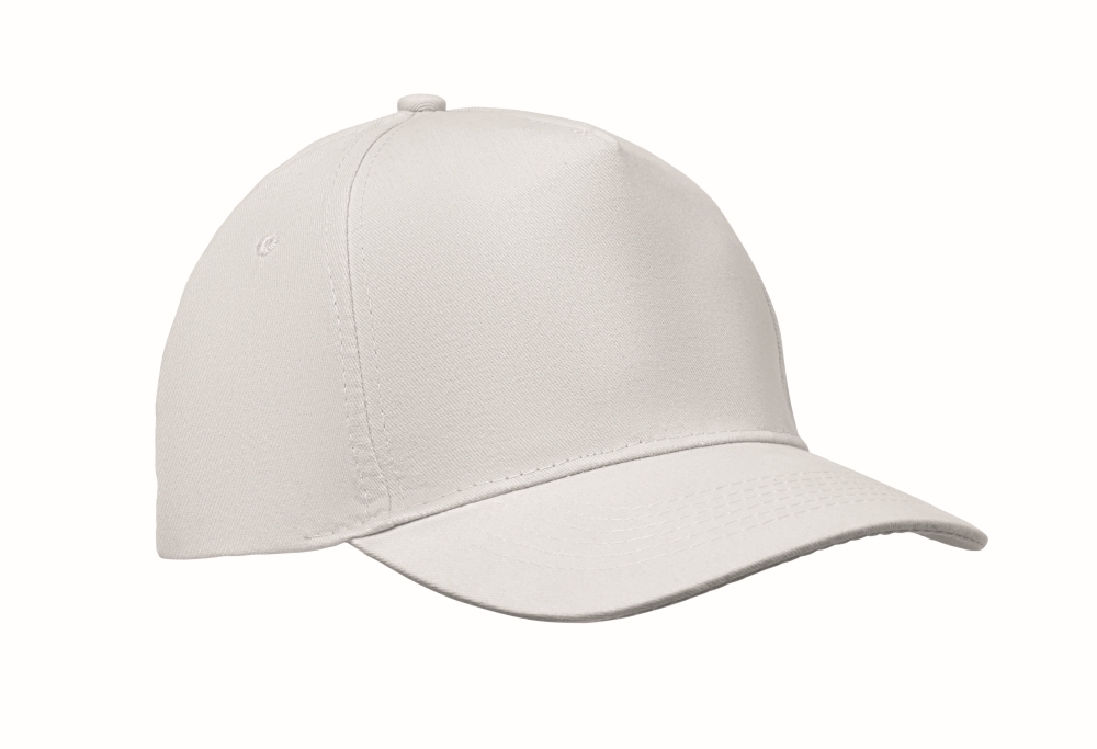 Pětipanelová baseballová čepice z bavlněného kepru 180 gr/m2 s nastavitelným zapínáním na suchý zip a 2 vyšívanými očky ve stejné barvě. Velikost 7 1/4. Rozměry: 20 x 17 x 11 cm