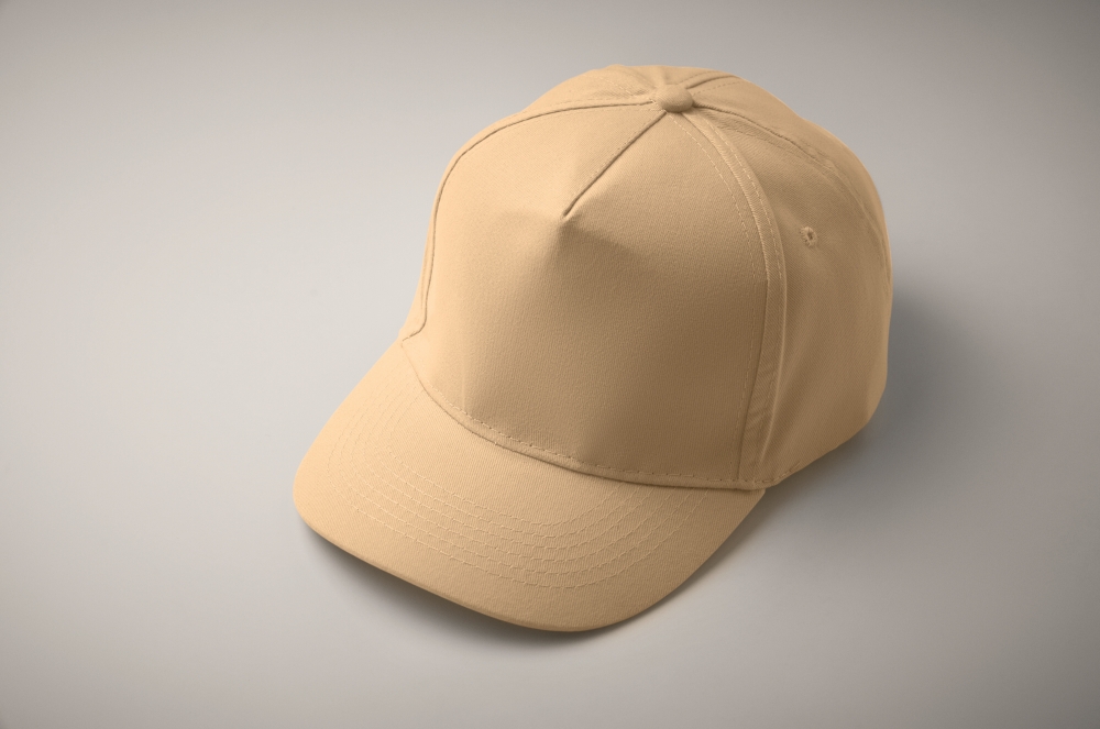 Pětipanelová baseballová čepice z bavlněného kepru 180 gr/m2 s nastavitelným zapínáním na suchý zip a 2 vyšívanými očky ve stejné barvě. Velikost 7 1/4. Rozměry: 20 x 17 x 11 cm