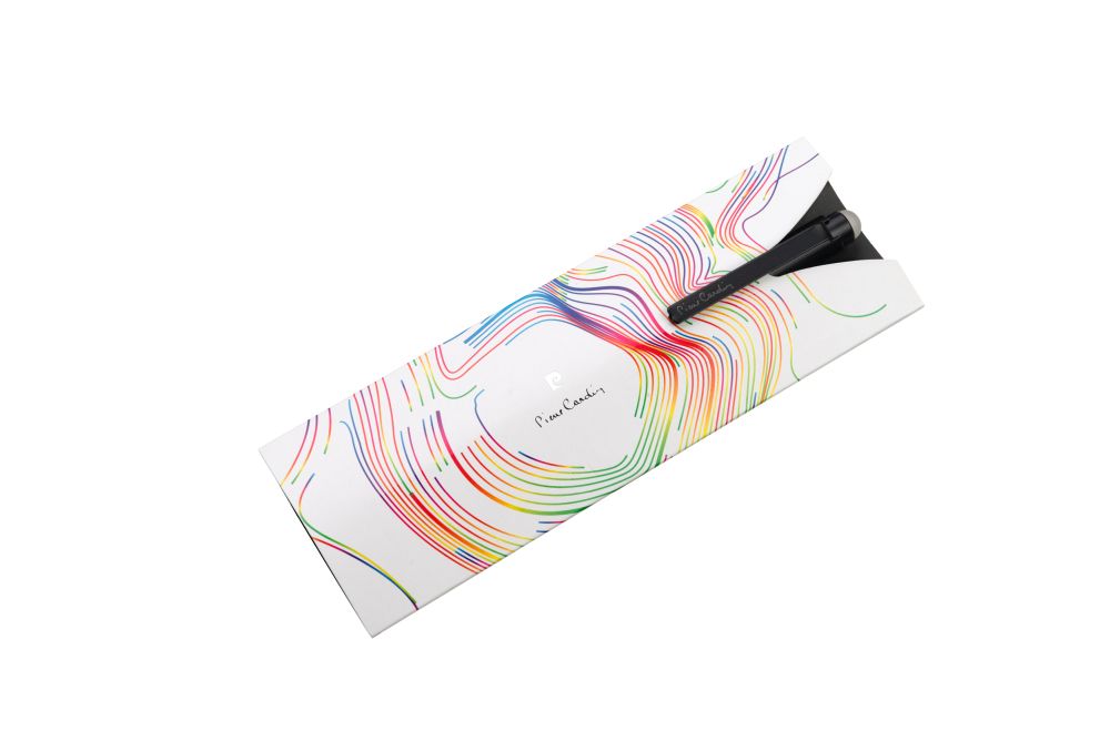 Elegantní mazací kovové kuličkové pero značky Pierre Cardin. Je nabízeno ve čtyřech moderních barvách. Pero obsahuje modrou náplň, kterou lze mazat pomocí speciálního stylusu umístěného v horní části pera. Baleno v luxusní kapse, dodáváno s certifikátem pravosti. Rozměry: kuličkové pero 1,1 × 1 4,3 cm; balení 5,5 × 15,5 cm.