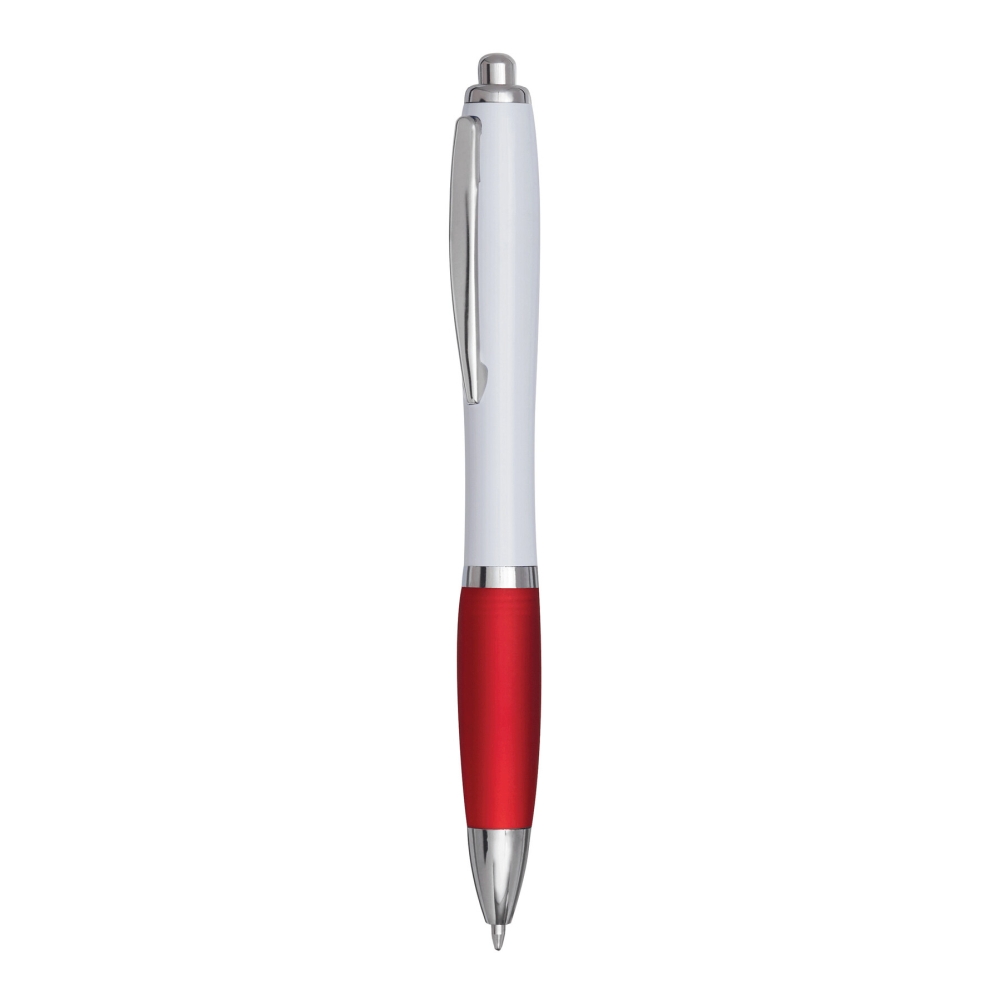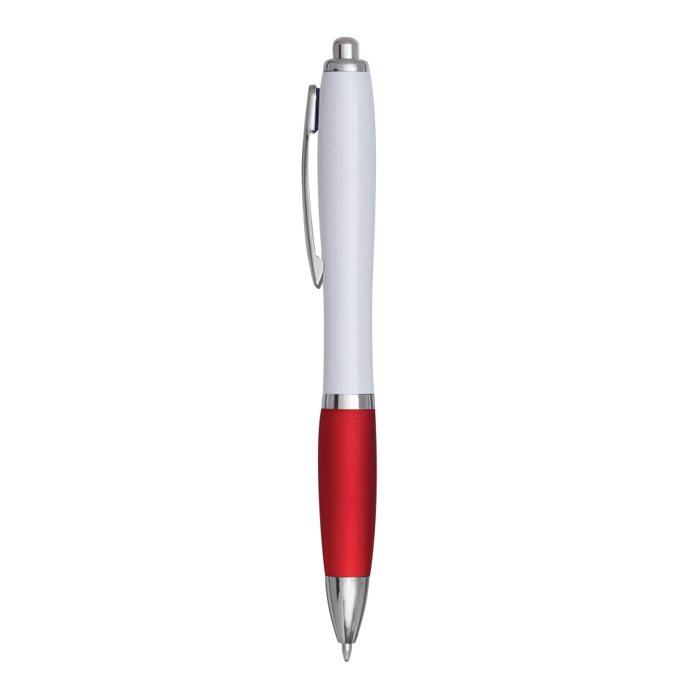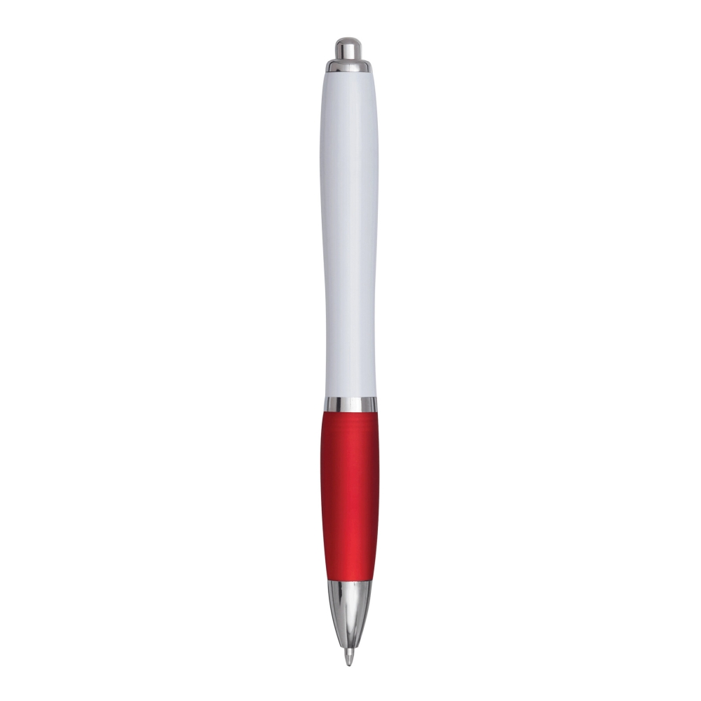 Propiska se zaobleným tělem z recyklovaného plastu, pogumovaná rukojeť, klikací mechanismus, velká náplň, modrý inkoust. Rozměry: 14 cm