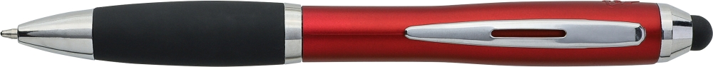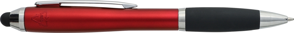 Propiska s jednobarevným pogumovaným tělem se stříbrnými akcenty a černým kapacitním dotykovým stylusem. Vyrobena z recyklovaného ABS plastu, což snižuje množství plastového odpadu a zároveň zachovává vysokou odolnost proti nárazu a dlouhou životnost. Součástí je stiskací mechanismus, modrý inkoust a gravírované recyklované logo na těle. Rozměry: 1,2 x 1,6 x 13,6 cm