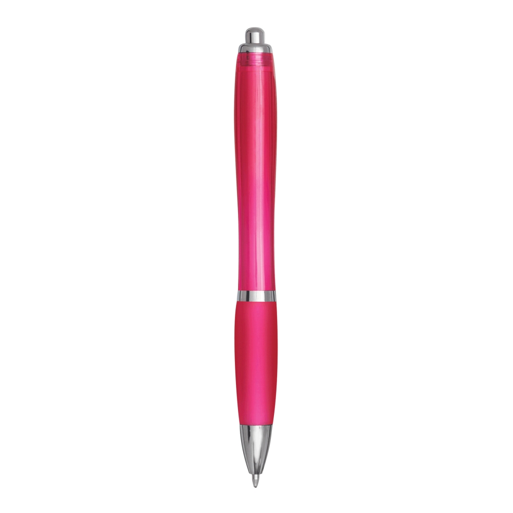 Plastová propiska s gumovým úchopem, tmavě růžová