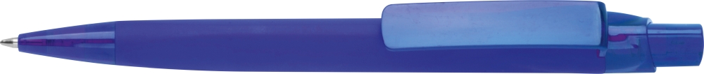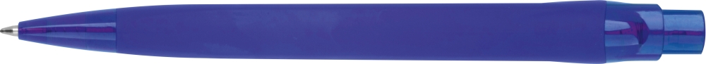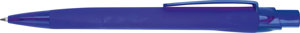 Pogumovaná plastová propiska s velkokapacitní modrou náplní. Rozměry: o 1,1 x 14,5 cm