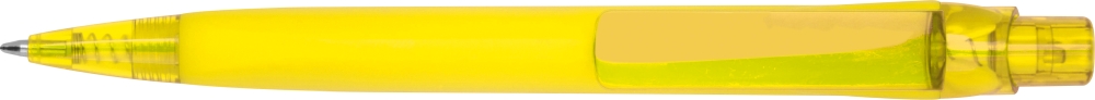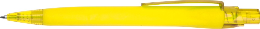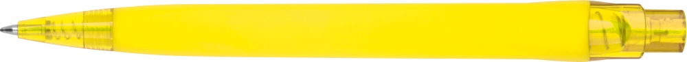 Pogumovaná plastová propiska s velkokapacitní modrou náplní. Rozměry: o 1,1 x 14,5 cm