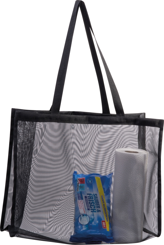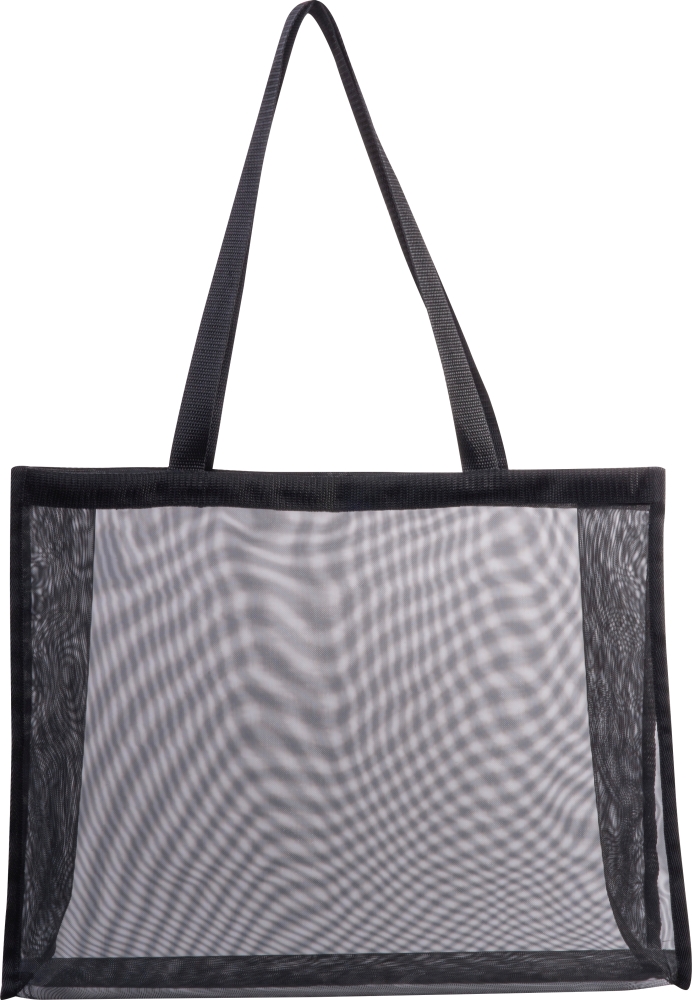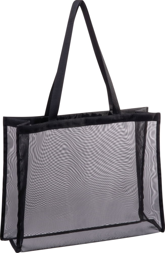 Velká, pprůhledná polyesterová plážová nebo nákupní taška s dlouhými uchy. Rozměry: 45 x 13,5 x 34,5 cm