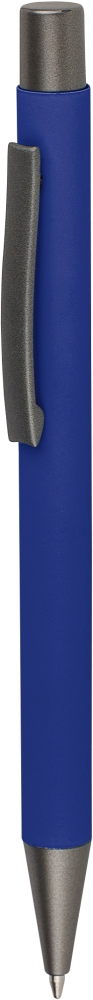 Propiska z recyklovaného hliníku s měkkým gumovým povrchem a modrým inkoustem. Navržena s tmavě šedými akcenty a zrcadlovou vrstvou pod povrchem pro výrazný gravírovaný výsledek. Má stiskací mechanismus a je zakončena gravírovaným recyklovaným logem. Rozměry: 1 x 1,4 x 13,6 cm