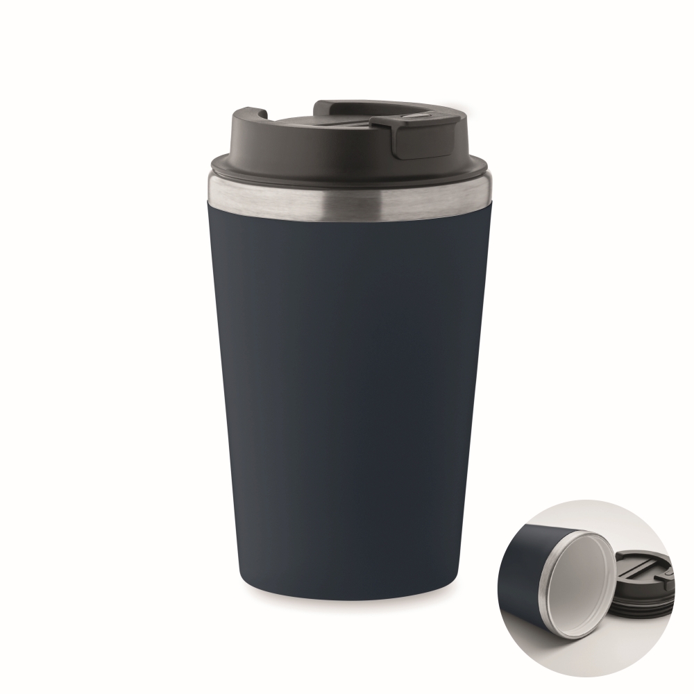 Dvoustěnný pohárek s vnější stěnou z PP a vnitřní stěnou z recyklované nerezové oceli (90 % recyklované nerezové oceli a 10 % nerezové oceli) s keramickou vrstvou. Neteče. Objem: 350 ml. Rozměry: O 8,5 x 14 cm
