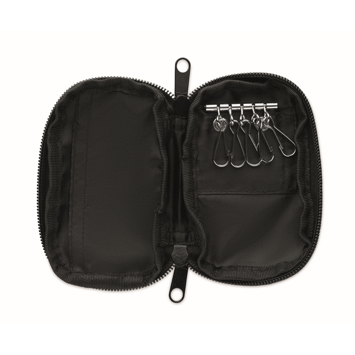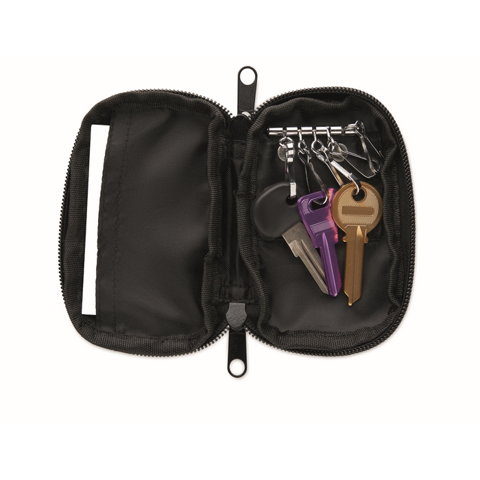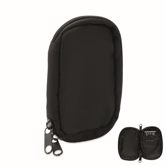 Pouzdro na klíče se zapínáním na zip. Vyrobeno z 300D RPET s podšívkou z 210D RPET. 5 karabinek na klíče. Rozměry: 6.5 x 2.5 x 10.5 cm