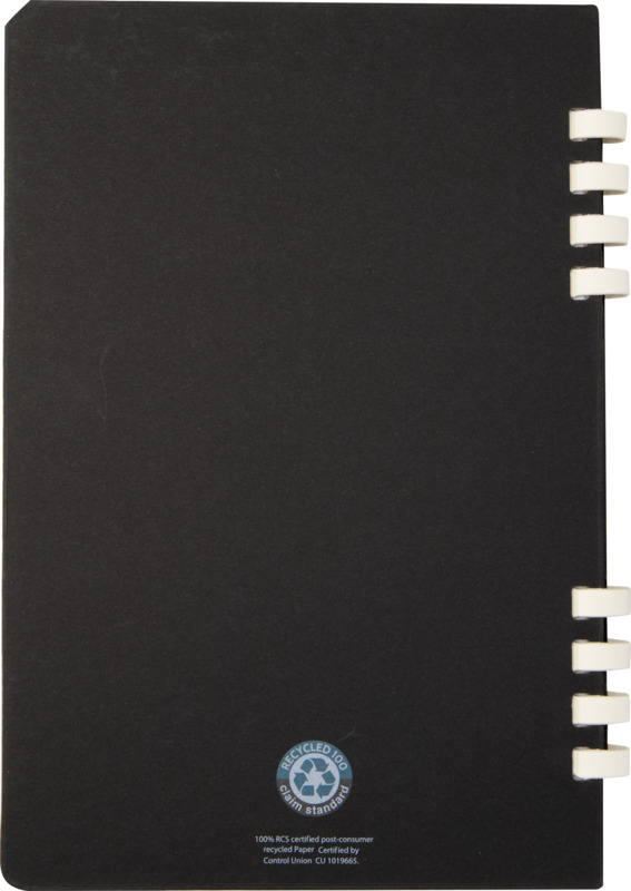 Kroužkový zápisník formátu A5 s pevnou vazbou a 60 linkovanými listy je vyroben z recyklovaného papíru s gramáží 70 g/m2 a certifikací RCS. Je vyroben výhradně z recyklovaných materiálů, po použití ho tedy snáze zlikvidujete a recyklujete, což z něj činí praktickou volbu. Recyklovaný papír.
